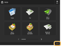 Cuando las grapas de la unidad de acabado se agotan, aparece un icono en la esquina inferior derecha de la pantalla indicándole que tiene que reponer las grapas. Pulse el icono y siga las instrucciones de la pantalla para reponer las grapas.