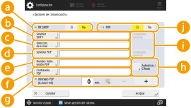 En función del entorno, puede tener que especificar el número de puerto SMTP/POP3. Para obtener más detalles, póngase en contacto con el proveedor de servicios de Internet o los administradores de la red. <Especifique número de puerto para TX SMTP/RX POP> |