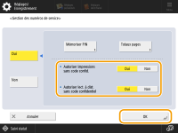 Sélectionnez <Non> pour les fonctions à gérer et appuyez sur <OK>.