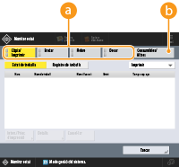 Es mostra l'estat actual o el registre de l'element seleccionat. En aquesta pantalla podeu cancel·lar la còpia, la impressió i la transmissió per fax.