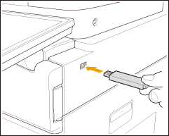 Podeu connectar un dispositiu de memòria USB als ports USB que hi ha a la part dreta de l'equip i imprimir dades directament des del dispositiu de memòria USB. Els originals llegits utilitzant l'equip també es poden desar directament al dispositiu de memòria USB.