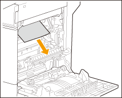 En els casos següents, poseu-vos en contacte amb el vostre distribuïdor local Canon.No podeu finalitzar el procediment perquè s'ha enganxat paper a la unitat de fixació i no es pot traure. Podeu veure el paper encallat dins de la unitat de fixació, però no es pot traure. |