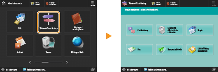 Stisknutím <Výukové/Časté dotazy> můžete zobrazit obrazovku, na níž najdete vysvětlení, co můžete dělat s funkcemi stroje, a také tipy pro použití funkcí kopírování, skenování atd. Vyvolejte tuto obrazovku, chcete-li se dovědět, které funkce jsou na stroji k dispozici a jak je používat. Stránku s častými dotazy lze zobrazit také z mobilního zařízení.
