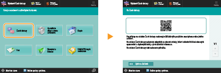 Stisknutím tlačítka <Časté dotazy> zobrazíte QR kód. Když pak tento QR kód naskenujete na mobilním zařízení, jako je smartphone nebo tablet, můžete si zobrazit stránku s častými dotazy ke stroji.
