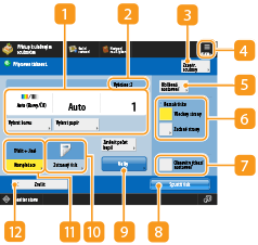 Zde se zobrazuje stav nastavení, např. velikost papíru, na který se má tisknout, a počet výtisků. V zájmu správného tisku dokumentů nastavení vždy zkontrolujte. Chcete-li nastavení změnit, stiskněte tlačítko pod zobrazením. Chcete-li změnit počet výtisků, zadejte počet s pomocí číselných tlačítek.