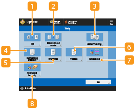 Afhængigt af funktionen kan du se under funktionen <Kopi> for at få oplysninger. |