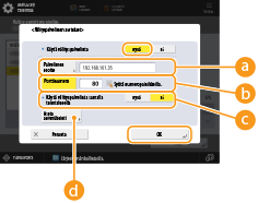 Määritä <Käytä välityspalvelinta> -asetukseksi <Kyllä>, määritä tarvittavat asetukset ja valitse <OK>.