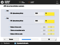 Määritä verkkoyhteyden asetukset. ![]() ![]() Valitse <Kyllä> kohdassa <Käytä IPv4-muotoa> tai <Käytä IPv6:tta> ja valitse sitten <Seuraava>. Voit myös käyttää sekä IPv4:ää että IPv6:ta. Voit ohittaa verkkoasetukset ja jatkaa vaiheeseen 9 valitsemalla <Ei> kohdassa <Käytä IPv4-muotoa> ja <Käytä IPv6:tta> ja valitsemalla sitten <OK>. ![]() Jos valitset <Kyllä> kohdassa <Käytä IPv4-muotoa>, määritä seuraavat asetukset. ![]() Voit hankkia IP-osoitteen automaattisesti valitsemalla <DHCP> tai <Autom. IP> ja valitsemalla sitten <Seuraava> tai <OK>. Jos haluat määrittää IP-osoitteen manuaalisesti, poista valinta kohdassa <DHCP> tai <Autom. IP>, kirjoita arvot valitsemalla <IP-osoite>, <Aliverkon peite> ja <Yhdyskäyt. osoite> ja valitse sitten <Seuraava> tai <OK>. Lisätietoja IPv4-osoiteasetuksista on kohdassa IPv4-osoitteen asettaminen. ![]() Jos valitset <Kyllä> kohdassa <Käytä IPv6:tta>, määritä seuraavat asetukset. ![]() Jos haluat käyttää tilatonta osoitetta, valitse <Kyllä>. Jos et halua käyttää tilatonta osoitetta, valitse <Ei>. Valitse sitten <Seuraava>. Lisätietoja IPv6-osoitteesta on kohdassa IPv6-osoitteen asettaminen. ![]() Kun olet määrittänyt tilattoman osoitteen, määritä seuraavat asetukset. ![]() Jos haluat käyttää manuaalista osoitetta, valitse <Kyllä>. Jos et halua käyttää manuaalista osoitetta, valitse <Ei>. Valitse sitten <Seuraava>. Jos haluat käyttää manuaalista osoitetta, kirjoita arvot valitsemalla <Manuaalinen osoite>, <Etuliitteen pituus> ja <Oletusreitittimen osoite>. ![]() Kun olet määrittänyt manuaalisen osoitteen, määritä seuraavat asetukset. ![]() Jos haluat käyttää DHCPv6:tta, valitse <Kyllä>. Jos et halua käyttää DHCPv6:tta, valitse <Ei> ja paina sitten <OK>. | |
