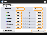 w pozycji <Wszyst. Kolory>. Użyj przycisków po lewej i prawej stronie każdego koloru w celu skonfigurowania każdego koloru z osobna. Po zakończeniu regulacji naciśnij przycisk <OK>.