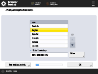 Wybierz język, w którym poszczególne ekrany będą wyświetlane. W zależności od wybranego języka, można zmienić układ klawiatury, która jest wyświetlana w celu wprowadzania znaków. ![]() ![]() Wybierz język i naciśnij na <OK>. Aby zmienić układ klawiatury, naciśnij na <Ustaw>, wybierz układ klawiatury i naciśnij na <OK>. Wyświetlanie przycisku zmiany języka to wygodna funkcja, jeżeli język jest często zmieniany. Przełączanie języka ekranu | |