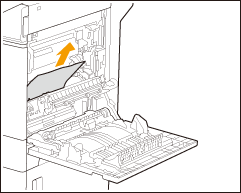 Nos casos que se seguem, contacte o revendedor local autorizado da Canon.Não consegue concluir o procedimento porque existe papel preso à volta da unidade de fixação que não consegue retirar. Consegue ver o papel encravado no interior da unidade de fixação, mas não consegue retirá-lo. |