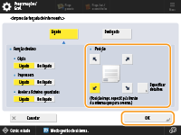 Carregue nos botões de seta para selecionar a posição de impressão. Para ajustar a posição com precisão, carregue em <Especificar detalhes> e especifique o local.