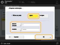 Para utilizar a função de autenticação do servidor proxy, carregue aqui e configure as informações de autenticação. No ecrã apresentado, carregue em <Ligado>, introduza o nome de utilizador e a palavra-passe a utilizar na autenticação do proxy e carregue em <OK>.