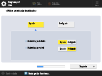 Não é possível iniciar o guia de configuração nos seguintes casos.Se a autenticação do utilizador ou a autenticação da ID de departamento estiver programada. Se a autenticação da ID de departamento estiver programada. Se a autenticação for efetuada com um cartão. |