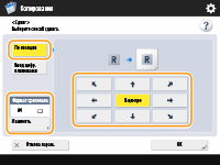 Если выполняется двустороннее копирование и необходимо переместить изображение на обратной стороне листа, укажите требуемое значение в разделе <Обр. стор.>. Чтобы переместить изображение так же, как лицевой стороне, нажмите кнопку <Так же, как на лицевой стороне>. Чтобы переместить изображение симметрично, нажмите кнопку <Противоположно лицевой стороне>. Чтобы переместить изображение на расстояние, отличное от указанного для лицевой стороны, нажмите кнопку <Задать> и введите необходимое значение.