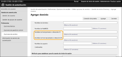(Ver. 3.12-)Compatibilidad con la especificación de dominios en direcciones IP al configurar la autenticación de servidor de Active Directory