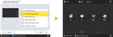 The shortcut buttons displayed in each function screen also appear in the <Home> screen. You can register frequently used functions to quickly access functions you frequently use without having to scroll the screen.