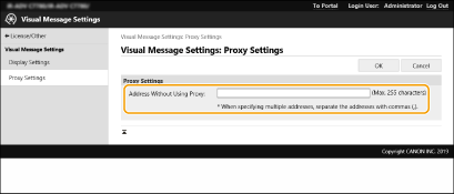 Specify the proxy settings in the Visual Message function to match the settings in <Proxy Settings>. If a proxy is set, the specified content may not appear. In this case, you can set an exception address so that the proxy server is not used.