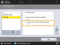 Set <Allow Jobs to Be Performed from Mobile Device> to <On> to enable the mobile authentication function. |