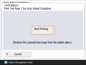 Press <Start Printing> to print Test Page 2. Remove Test Page 1 from the platen glass, as it is not used in the subsequent steps.