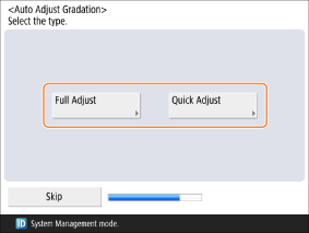 Perform adjustment for printing images. Select <Full Adjust> to perform full adjustment or <Quick Adjust> to perform quick adjustment.