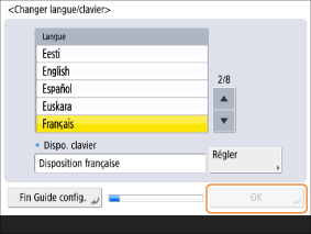 Sélectionnez la langue d’utilisation et appuyez sur <OK>.