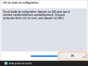 Lorsque vous appuyez sur <OK>, la machine redémarre.
