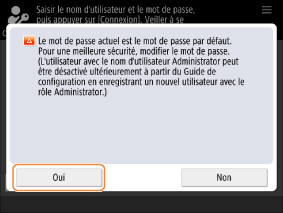 Vous pouvez appuyer sur <Oui> pour modifier le mot de passe par défaut.