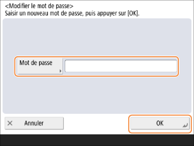 Saisissez le nouveau mot de passe et appuyez sur <OK>.
