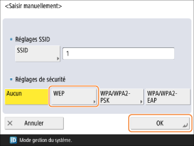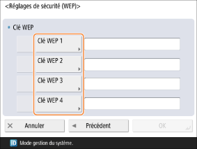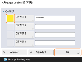 Sélectionnez l'une des valeurs <Clé WEP 1> à <Clé WEP 4> et entrez la clé WEP.