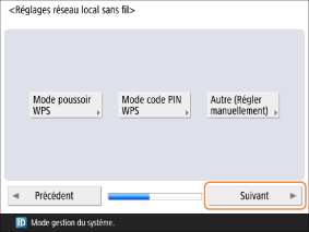 Sélectionnez la méthode d'authentification définie dans le routeur réseau local sans fil, et appuyez sur <Suivant>.