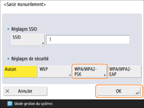 Sélectionnez <WPA/WPA2-PSK> et appuyez sur <OK>.