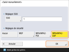 Sélectionnez <WPA/WPA2-EAP> et appuyez sur <OK>.