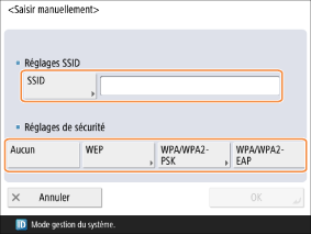 <Auto> : La machine règle automatiquement AES-CCMP ou TKIP en fonction des paramètres du routeur réseau local sans fil auquel se connecter.