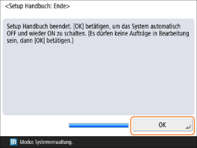 Wenn Sie <OK> drücken, wird das Gerät neu gestartet.