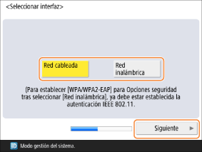 Seleccione el método de conexión a una red y pulse <Siguiente>.
