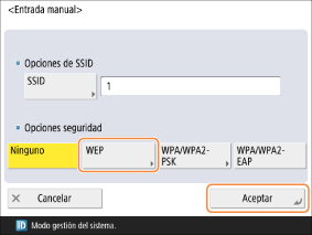 Seleccione <WEP> y pulse <Aceptar>.
