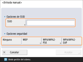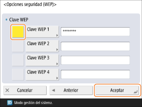 Seleccione una de <Clave WEP 1> a <Clave WEP 4> e introduzca la clave WEP.