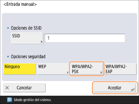 Seleccione <WPA/WPA2-PSK> y pulse <Aceptar>.