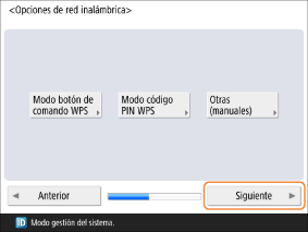 Seleccione el método de autenticación establecido en el enrutador de la red inalámbrica y pulse <Siguiente>.