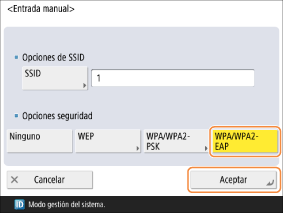 Seleccione <WPA/WPA2-EAP> y pulse <Aceptar>.