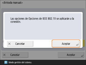Cuando se establece la autenticación de clave compartida en el enrutador de red inalámbrica no se podrá conectar con <Sistema abierto> seleccionado. Si selecciona <Sistema abierto> la opción cambia automáticamente a <Clave compartida> y se lleva a cabo la reconexión.