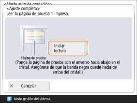 Coloque la página de prueba 2 en el cristal de copia y pulse <Iniciar lectura>.
