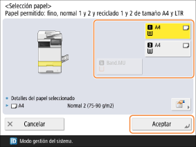 Seleccione el papel que se usará y pulse <Aceptar>.