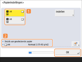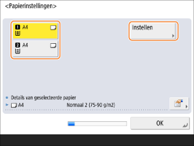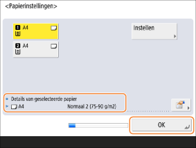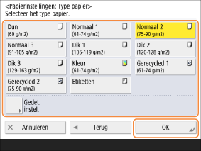 Als het type geplaatste papier niet wordt weergegeven, drukt u op <Gedet. instel.> en selecteert u het type papier.
