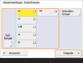 Als u een afwijkend papierformaat wilt gebruiken, drukt u op <Gebruikersformaat> en voert u het papierformaat in.