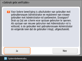 Als u geen gebruikersverificatie wilt gebruiken, stelt u <Gebruik gebr.verificatie> in op <Uit> en gaat u verder naar