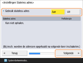 Wanneer dit is ingesteld op <Aan>, wordt een stateful adres automatisch opgehaald de volgende keer dat de stroom wordt ingeschakeld.