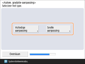 Voer aanpassingen uit voor het afdrukken van beelden. Selecteer <Volledige aanpassing> om volledige aanpassing uit te voeren of <Snelle aanpassing> om snelle aanpassingen uit te voeren.