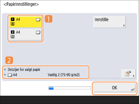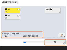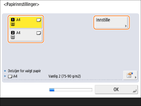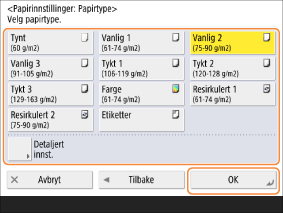 Hvis typen lastet papir ikke vises, trykker du på <Detaljert innst.> og velger papirtypen.